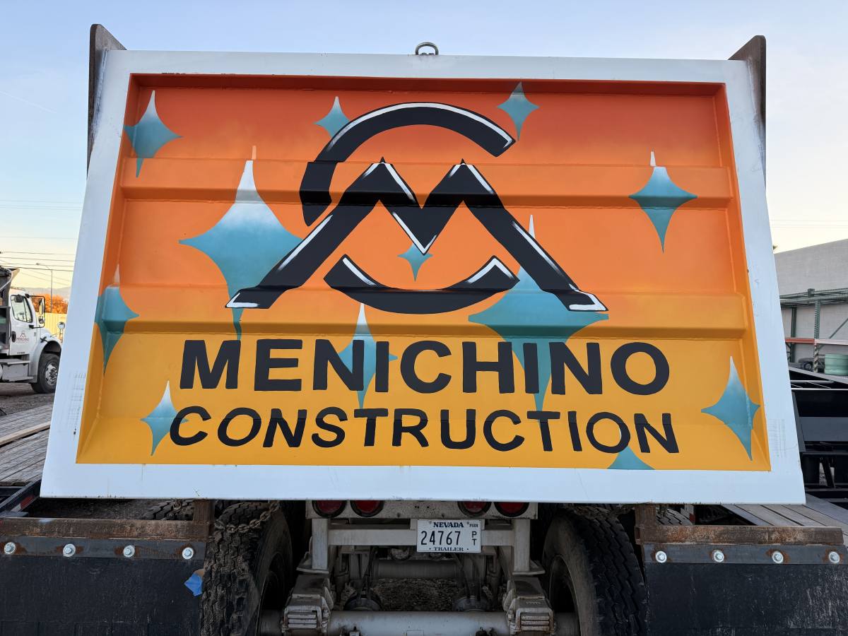 The mural features classic Vegas elements woven together in a dynamic composition, including dice, poker chips, a roulette table, a slot machine, and playing cards. These visuals capture the energy and identity of Las Vegas while giving the vehicle a striking presence both on and off the job site. To complete the piece, Menichino Construction’s logo was prominently placed on the back of the vehicle, ensuring strong brand visibility from every angle.