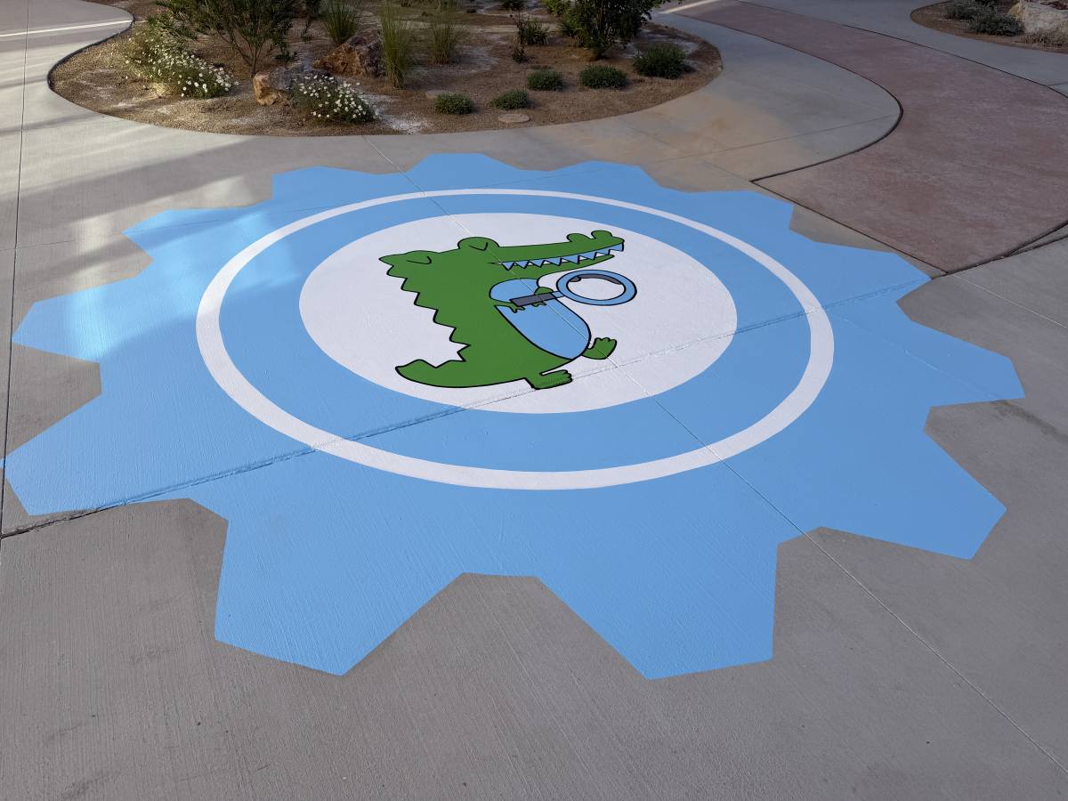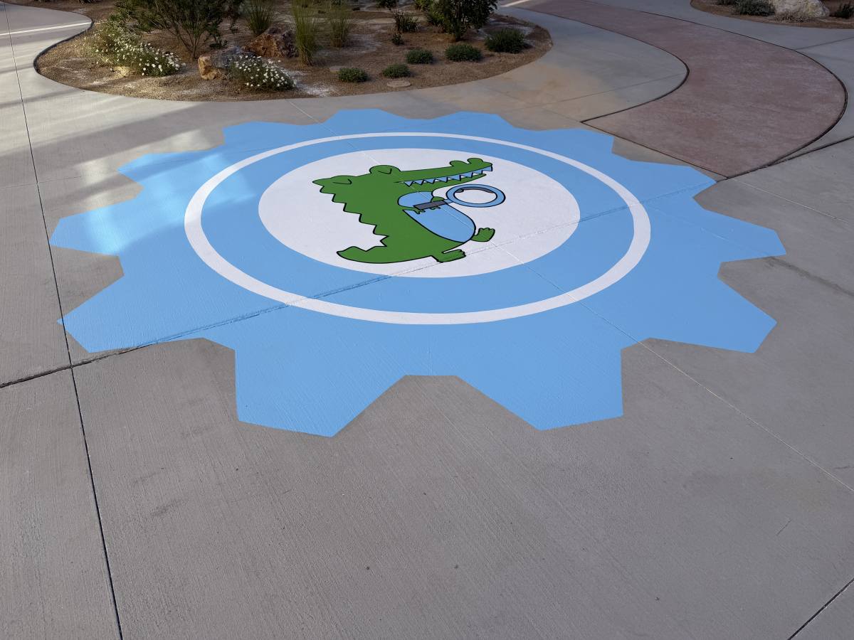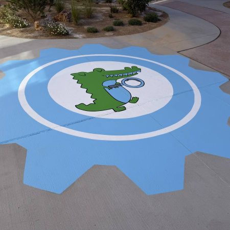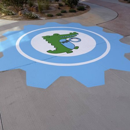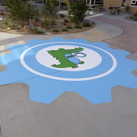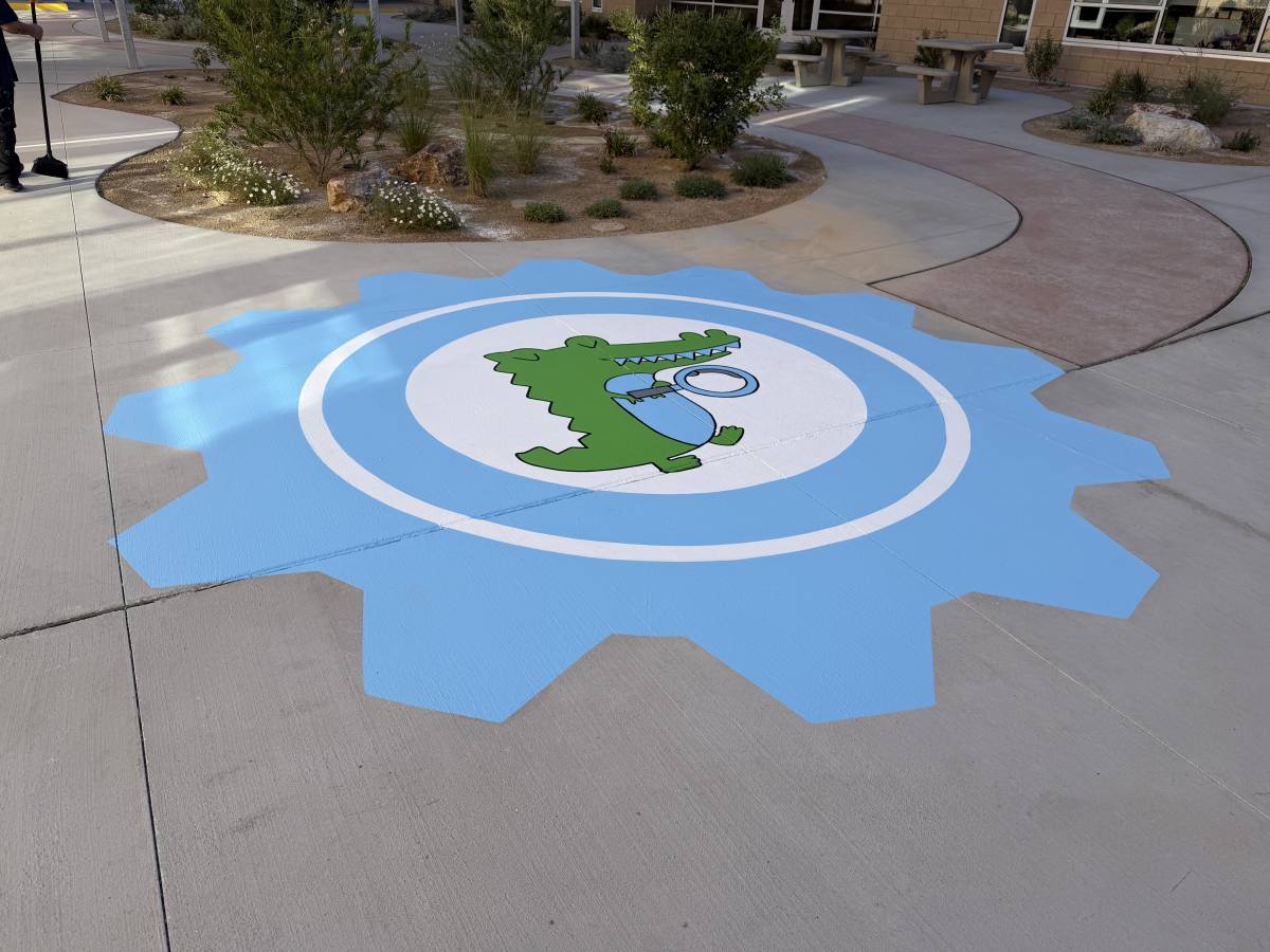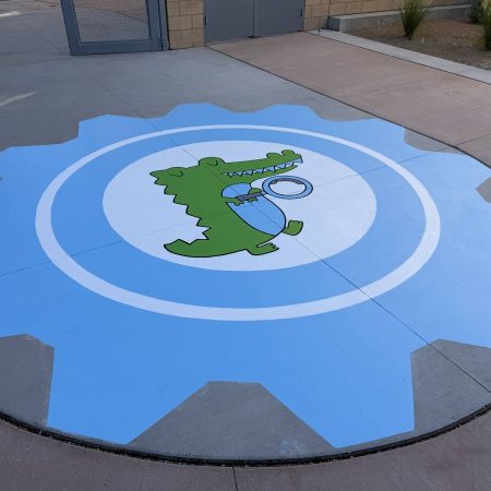 Our team recently completed a fun and straightforward mural project at Walter Bracken Academy in Las Vegas. The design features the school’s recognizable crocodile mascot framed by a gear — a perfect nod to their identity as a STEAM (Science, Technology, Engineering, Arts, and Mathematics) school.