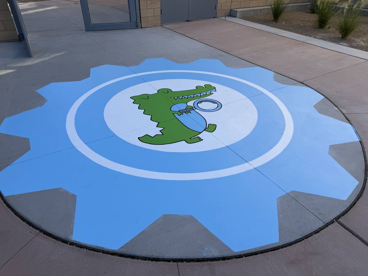 Our team recently completed a fun and straightforward mural project at Walter Bracken Academy in Las Vegas. The design features the school’s recognizable crocodile mascot framed by a gear — a perfect nod to their identity as a STEAM (Science, Technology, Engineering, Arts, and Mathematics) school.